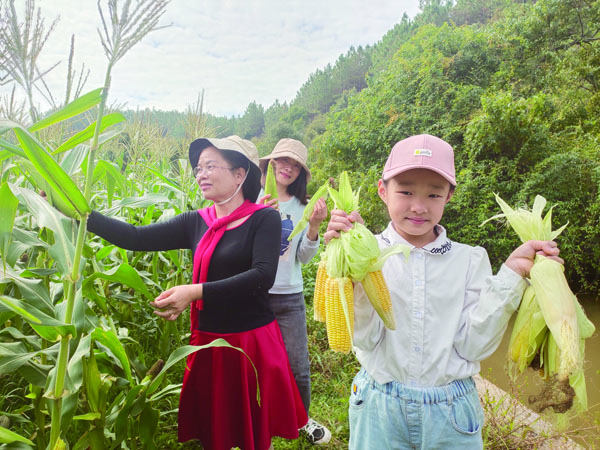 采摘玉米成了游客喜愛的休閑項(xiàng)目之一。