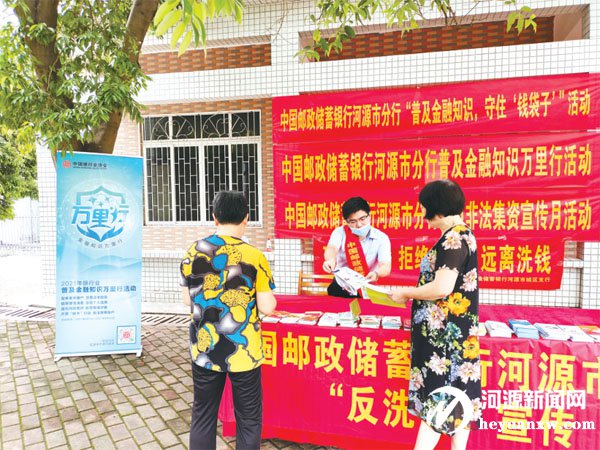 本報訊 記者 鄭婷影 通訊員 歐海燕 近日,郵儲銀行河源市分行組織城區支行到源城區白嶺頭核工業地質隊二九二大隊開展金融知識宣傳活動,活動以“守護您的安全暢通金融消費”為主題,向二九二大隊退休職工們及該社區居民宣導如何珍視個人信用、保護個人信息以及防范非法集資、反洗錢等知識。