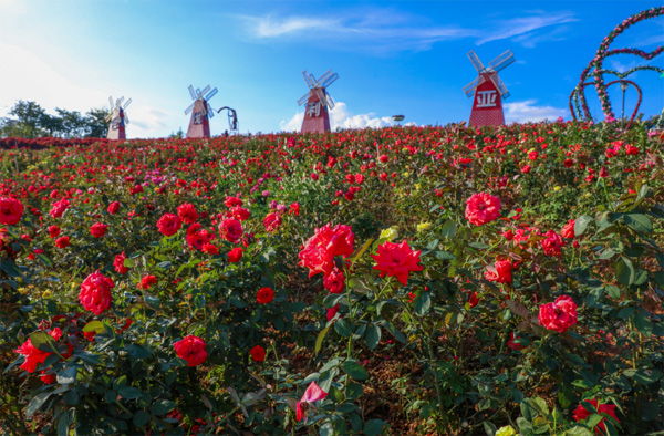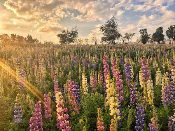 在春意盎然、爭奇斗艷的浪漫花海里