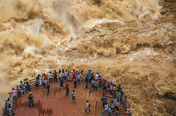 坐在江邊很容易被震撼住。滿腦子就是轟隆隆的聲音和激烈壯觀的場面,不知會想什么,不知該想什么。很多人拍完照片后都坐在那里發呆,看著與自己相關和不相關的奔放與激烈,在想著什么,或者什么都沒想。