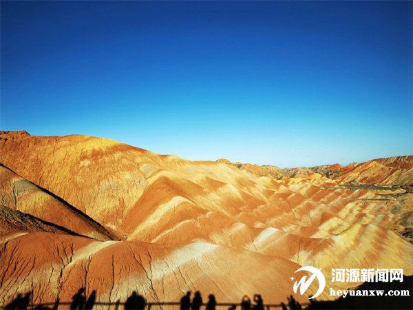在我眼里,張掖的七彩丹霞有點像張掖的地名含義:張國臂腋,以通西域。它不像其他地方的丹霞地貌那樣“赤壁丹崖”、危絕陡峭,而是一種張開手臂、和緩開放的姿態(tài);它不是一種單調(diào)的顏色,而是歡天喜地地迎候四方賓客的模樣。它是在迎接張騫鑿空西域后絲綢之路上東來西往的商賈游客嗎?是在歡迎前來張掖參加隋煬帝舉辦的“世界博覽會”的27國歐亞賓客嗎?或者,它在為敦煌壁畫中的飛天呈獻彩帶?這又讓我忽然想起我的一位語文老師對中西方美學(xué)造型的一個評價,老師說:“中國人比西方人聰明。西方人要一對翅膀才能飛天,而中國人卻只需要一根飄帶。”在我看來,這也是中西方在繪畫上的一個重要區(qū)別:西方油畫極盡細節(jié),中國國畫卻從簡寫意。而七彩丹霞正是天地間呈現(xiàn)的巨幅畫卷。它或許是一位寂寞的仙人隨性抹上的涂鴉,又或許是一群神仙比賽繪就的丹青。它既有西方油畫的豐富細膩,又有中國畫的簡潔超逸。這些仙人們用色大膽,調(diào)色盤里永遠裝著你想象不到的顏料。當然,紅和黃是他們的最愛。七彩丹霞那飄逸的線條又似流動的音樂,抑或是曼妙的舞姿。是它給了甘州音樂《波羅門佛曲》以某種啟示?還是在傳入宮廷后,又給了唐玄宗改編為《霓裳羽衣舞曲》以靈感?總之,它“只應(yīng)天上有,人間難得幾回聞”。難怪,美國《國家地理》雜志會將它列為“世界十大神奇地理奇觀”之一。