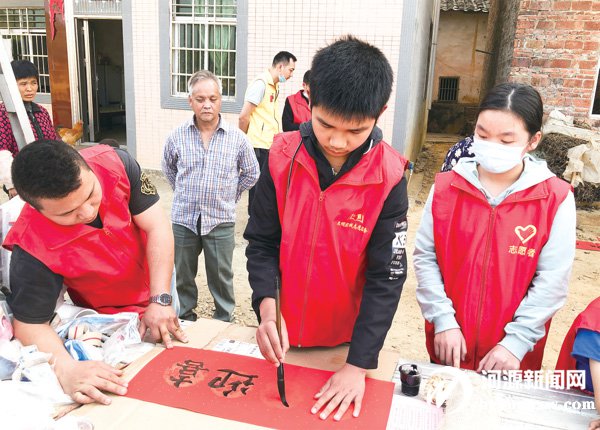 為做好疫情防控工作,避免人群聚集,活動采取送春聯(lián)入戶的形式進(jìn)行。活動邀請了資深書法家、返鄉(xiāng)大學(xué)生志愿者為群眾義寫春聯(lián),志愿者們幫助群眾晾曬、疊裝春聯(lián),深受群眾好評。