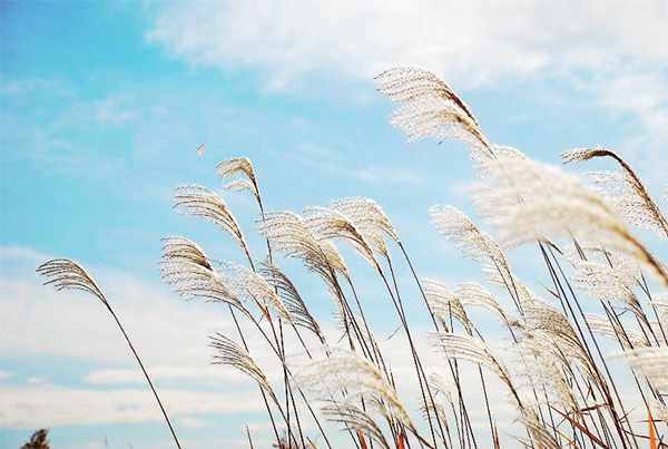 清少納言說:“蘆花沒什么看頭。”這反而讓我更加細致地去觀察蘆花。卻發現它有一種平和高雅的美。幼嫩時的蘆花是淺紫色的,呈現一種健康、恬靜的姿態,成熟的蘆花呈圓錐形,花絮如雪,風吹花動,大大方方、瀟瀟灑灑地舒展著,顯得更加莊重安然。