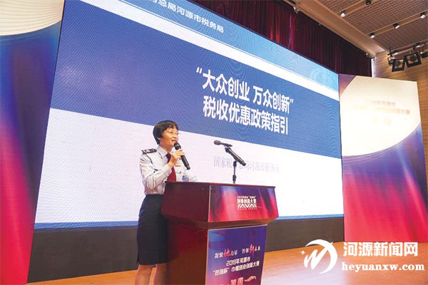 鐘靖在市巾幗創業創新大賽現場為參賽選手講解稅收優惠政策。