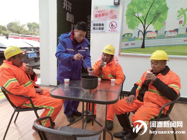 本報訊 記者 鄭婷影 通訊員 葉子婷 為進一步推動全國文明城市創建工作,連日來,中國石化銷售股份有限公司廣東河源石油分公司(以下簡稱中石化河源分公司)深化“我為群眾辦實事”實踐活動,聚焦環衛工人的難題,在黃沙加油站、文昌加油站、高埔加油站等11座戶外勞動者“愛心驛站”開展“冬送溫暖”活動,每天特地備有姜糖茶供環衛工人免費飲用(如圖),還解決環衛工人寒冬取暖、飲水休息、飯菜加熱等實際問題。