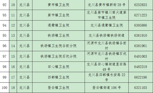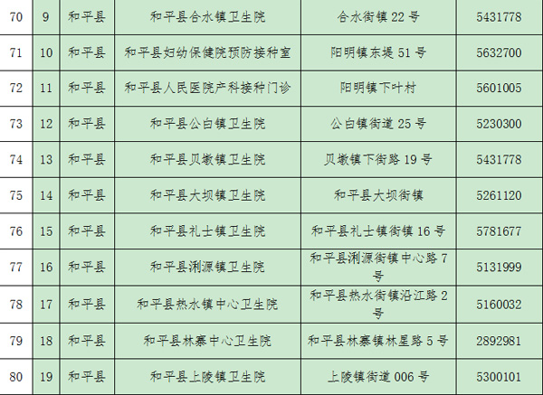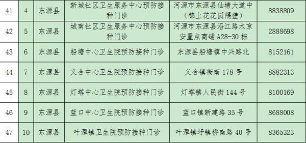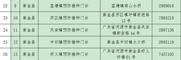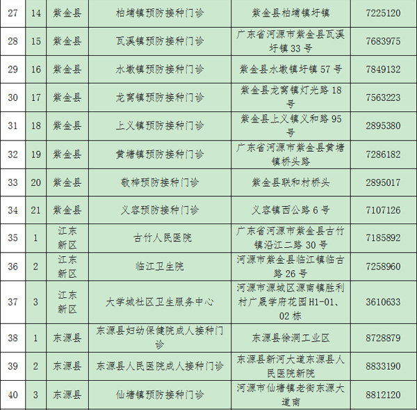 河源市新冠病毒疫苗接種單位一覽表(第一批)