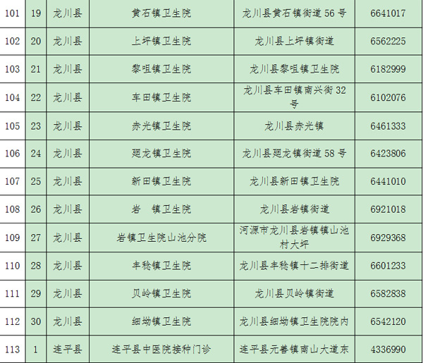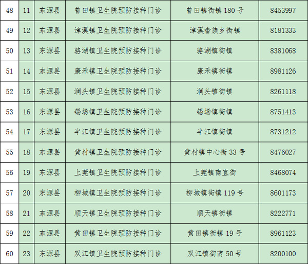 附件:河源市新冠病毒疫苗接種單位一覽表(第一批)