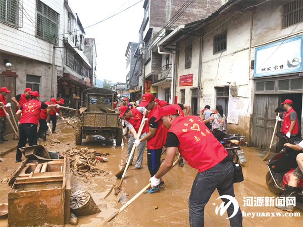 幾天后,服務隊再次組織70多名志愿者帶上大米、糧油、藥品、鐵鏟、消毒液、消毒工具等一批物資深入重災區,全力以赴幫助災區群眾盡快恢復生產生活,以實際行動踐行了全心全意為人民服務的宗旨。