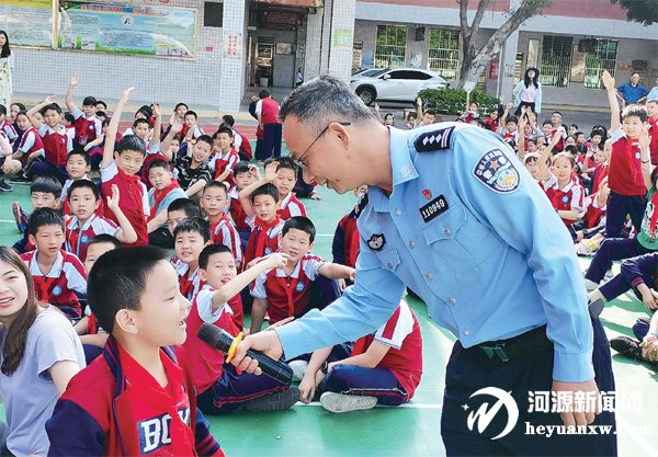 東埔派出所進校園開展公益活動,賴國標與孩子們互動。