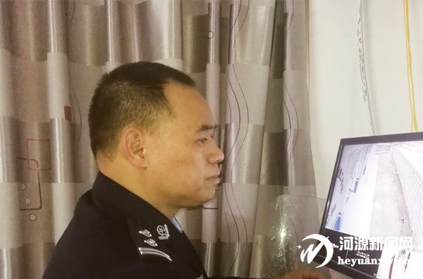 謝文輝通過(guò)視頻監(jiān)控尋找破案線索。