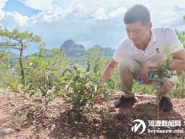 留洞村地處古竹鎮東南部,因傳說趙佗赴任龍川縣時留宿越王山頂巖洞而得名。小而美是留洞最大的特色,面積僅4.5平方公里,但山清水秀,風景如畫,尤其是擁有面積不小的丹霞地貌。然而這樣的丹霞地貌卻在一定程度上限制了留洞村的農業發展。由于丹霞地貌山地坡度較陡,不利于農作物種植,村民們大多外出務工,就目前來說,全村233戶1014人,常住人口只有400人,一半以上都外出務工。然而,這種不利于農作物種植的土地卻適合種植巖茶。陳志靈曾在惠州種植巖茶多年,具有豐富的種植巖茶經驗。他說,對于留洞村的良好生態,不能去破壞它,只能在沒有樹林的地方或者是石頭下面,一點一點地種,留洞村丹霞地貌土壤比較好,相信在留洞可以種出好茶。目前,巖茶項目第一期約400畝開整完成,已種植茶苗7.5萬株,2023年初可實現收成,5年后年產值預計700萬元以上。