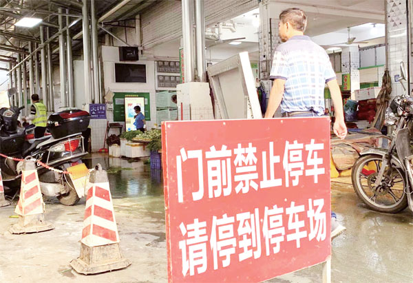 盡管設置了提示牌,但仍有市民將摩托車停在市場。