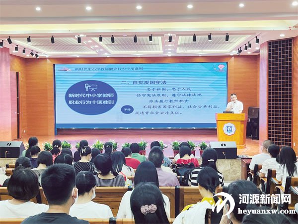 今年教師節(jié)前夕,葉興增帶領(lǐng)全體老師認(rèn)真學(xué)習(xí)了《新時(shí)代中小學(xué)教師職業(yè)行為十項(xiàng)準(zhǔn)則》,要求老師們要明確師德底線,規(guī)范職業(yè)行為,加強(qiáng)自我修養(yǎng),爭做“四有”教師。這是河源市第三小學(xué)加強(qiáng)教師隊(duì)伍建設(shè)的具體舉措之一。