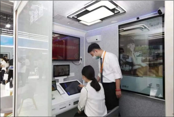 本次展會,郵儲銀行將北京分行創(chuàng)新研制的“集約服務(wù)艙”搬到了展會現(xiàn)場,吸引了大批參觀者,大家紛紛現(xiàn)場體驗(yàn)艙內(nèi)自助辦理業(yè)務(wù)。