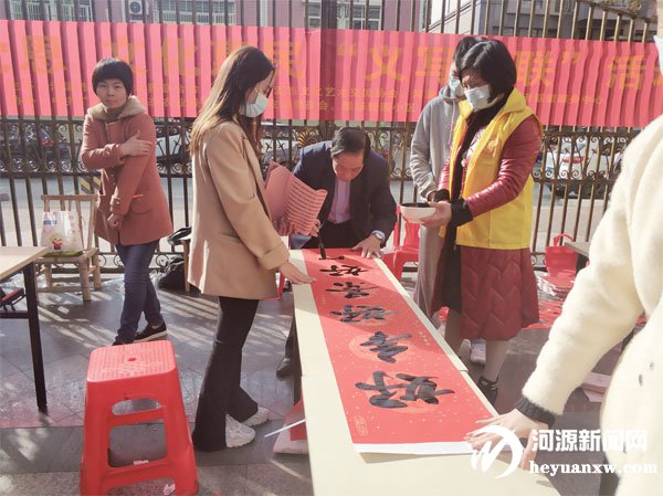 近日,由河源市文學藝術界聯合會主辦,河源市文化藝術交流協會、河源市仁愛天下志愿者聯盟服務中心承辦的“感黨恩文化惠民”義寫春聯活動在翠澤新園小區舉行。記者在現場看到,書法家們揮毫潑墨,用喜慶的對聯和“福”字,將新春的美好祝福送給廣大市民朋友。“這樣的活動我們很喜愛。”拿到大紅春聯的小區業主朱先生喜笑顏開,由衷地感嘆這樣的手寫春聯比印刷出來的春聯多了人情味兒和年味兒。