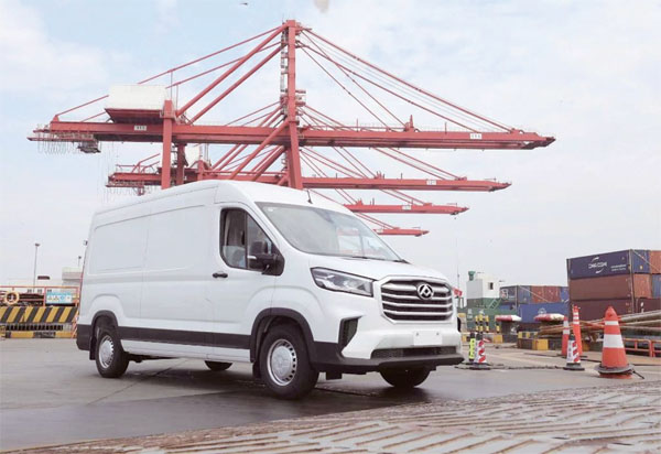 正在港口“蓄勢待發(fā)”的上汽大通汽車。