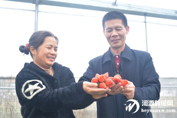 講起這幾年家里的變化,夫婦倆感慨不已。由于孩子患病需要長期堅持治療,一家人在幾年前成了幫扶的貧困戶,兩人也不得不在家附近找零工做。2016年,幫扶單位給黃仕添一家及其余兩戶脫貧戶劃定大棚實驗種植區(qū),嘗試讓他們通過種植產(chǎn)業(yè)增收。同時通過投入13.2萬元引進華南農(nóng)業(yè)大學(xué)“甘露”“紅寶”優(yōu)質(zhì)草莓、中國熱帶農(nóng)業(yè)科學(xué)院精品西瓜和優(yōu)質(zhì)葡萄開展大棚種植,帶動該村當(dāng)年的貧困戶參與種植,實現(xiàn)產(chǎn)業(yè)穩(wěn)定扶貧,提高他們的經(jīng)濟收入。
