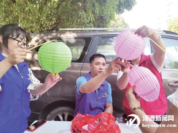 市區(qū)沿江路的文化廣場志愿驛站,來自河源好人互助聯(lián)合會的志愿者們在驛站開展志愿服務(wù)活動,與市民一同品月餅、猜燈謎和制作傳統(tǒng)節(jié)日燈籠活動,和市民共同度過一個文明、和諧的中秋節(jié)。