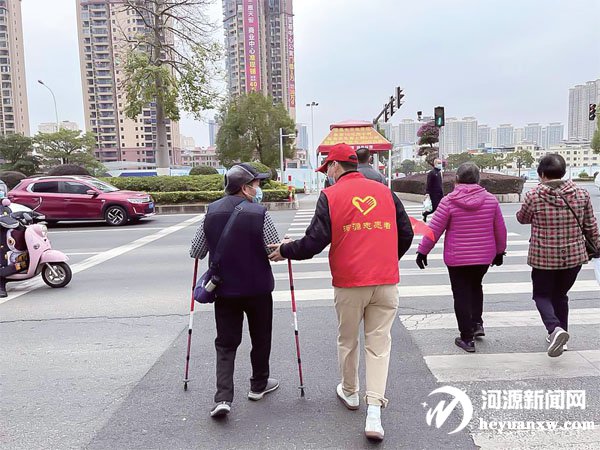 志愿者攙扶老人過馬路 劉奇峰 徐婧 攝