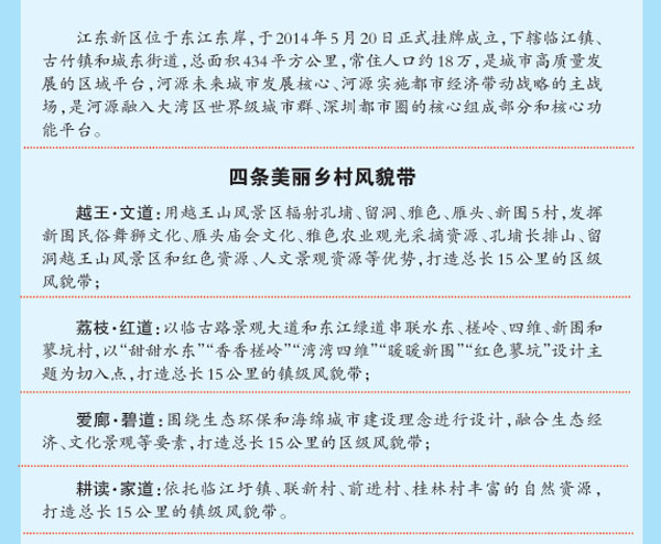 江東新區(qū)提出,必須堅持生態(tài)優(yōu)先,深入貫徹習近平生態(tài)文明思想,踐行“兩山”理念,大力發(fā)展綠色經(jīng)濟,保護好江東新區(qū)的青山綠水,推動生態(tài)優(yōu)勢轉(zhuǎn)化成發(fā)展優(yōu)勢。今年,江東新區(qū)將全力實施鄉(xiāng)村振興行動,加快建設美麗幸福新村,探索山區(qū)村攜手奔共富密碼,將以推進“越王·文道、荔枝·紅道、愛廊·碧道、耕讀·家道”四條15公里美麗鄉(xiāng)村風貌帶建設為中心,深入推進人居環(huán)境整治,持續(xù)改善農(nóng)村面貌;引導群眾加強荔枝、葡萄、雙坑土雞等特色農(nóng)產(chǎn)品和金絲皇菊、中草藥種植管理,打造高效益農(nóng)業(yè);開展鄉(xiāng)村振興重大項目招商推介活動,鼓勵社會資金參與鄉(xiāng)村振興,大力發(fā)展城郊型農(nóng)業(yè)。培育壯大農(nóng)業(yè)特色產(chǎn)業(yè)。充分利用臨江、古竹鎮(zhèn)現(xiàn)有特色產(chǎn)業(yè),采取“公司(合作社)+基地+農(nóng)戶”發(fā)展模式,推動農(nóng)村集體土地流轉(zhuǎn)改革,推廣集體土地入股模式,擴大現(xiàn)代高效農(nóng)業(yè)種植面積6000畝,壯大村集體和村民經(jīng)濟收入。同時大力發(fā)展農(nóng)村電商、民宿、旅游等產(chǎn)業(yè),促進三產(chǎn)融合發(fā)展。