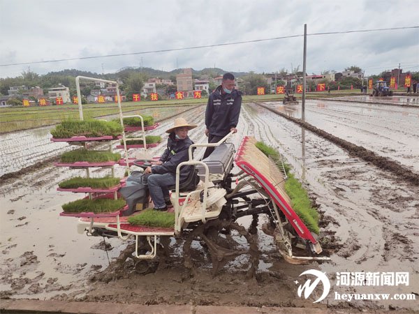 這場春耕“盛會”在平渡村烏泥塘小組的上百畝連片耕地里展開。與“烏泥塘”這個名字一樣,這里的土地平整而肥沃。48歲的村民曾杏旺是一名拖拉機手,他帶著他的“老伙計”——中型拖拉機一起參加這場“盛會”。他的“老伙計”是3年前購買的,總價值7.3萬,政府補貼1.8萬,當年就掙回了本錢。除平渡村外,曾杏旺帶著“老伙計”作業(yè)半徑還輻射到鄰近的新圍、雅色、吉安等村。他說,拖拉機手也辛苦,為了搶天時,有時早上6時就要開耕,中午1時多還沒有時間吃飯。今年天氣寒,然平渡開春早,他已忙活了一個月,目前農(nóng)忙已接近尾聲。像曾杏旺這樣的拖拉機手,整個平渡村有3名。