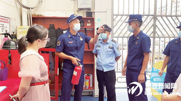 張友金(左二)在市區(qū)開展消防安全宣傳。