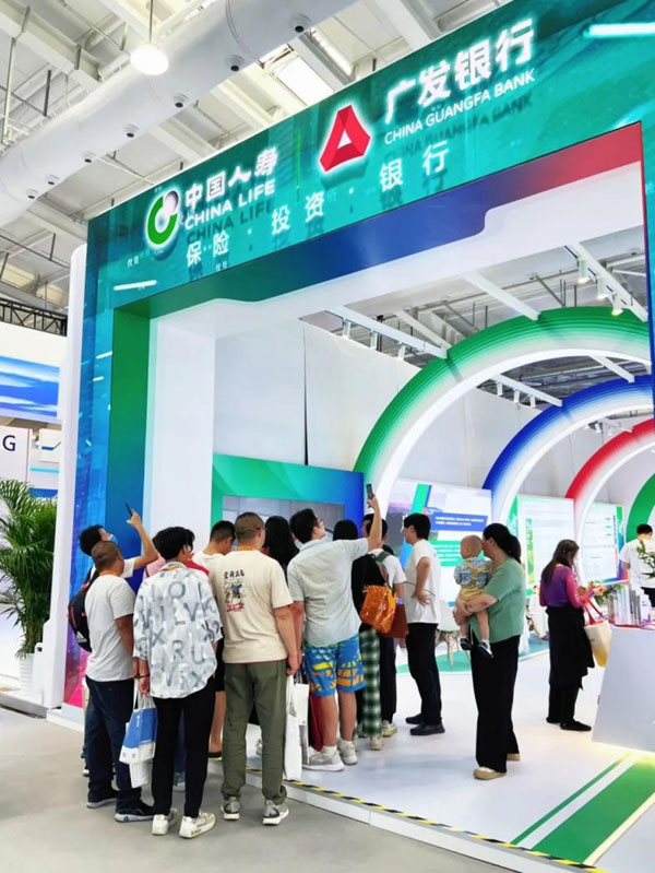 中國人壽-廣發銀行聯合展位分為大國重器、大美神州、大愛為民三個篇章,吸引了觀眾紛紛駐足觀看。