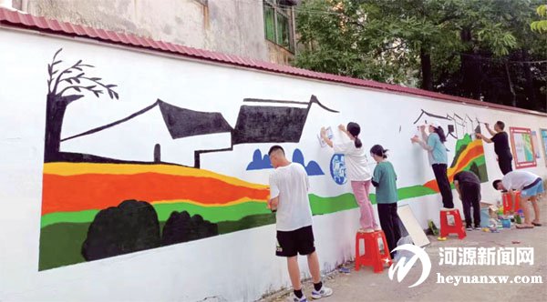 賦能鄉(xiāng)村振興,整治美好人居環(huán)境。返鄉(xiāng)大學生充分發(fā)揚吃苦耐勞、任勞任怨的精神,拿著打掃工具,重點清理村莊道路兩側、村民房前屋后的環(huán)境。同時,還積極向村民宣傳鄉(xiāng)村振興相關知識,切實提高村民對推進鄉(xiāng)村振興戰(zhàn)略工作的知曉度、支持度和滿意度,并開展了“我用青春描繪多彩家鄉(xiāng)”美麗鄉(xiāng)村墻繪活動,返鄉(xiāng)大學生將紅色革命文化、家訓家風文化、田園風光文化繪制到村道墻壁上,展現(xiàn)了源城鄉(xiāng)村的山水之美、人文之美、和諧之美和發(fā)展之美。