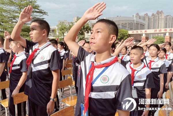 在河源市第一中學的開學典禮上,校長鄒日雄介紹了學校發展情況特別是今年初中升高中情況,勉勵學生要努力學習,爭取更大的進步。該校黨支部書記吳國陽給學生上了題為《激揚愛國情,奮斗正當時》的“思政第一課”,勉勵同學“如果每個人都活成一束光,那么中國,就必將是一輪閃耀的太陽!”在聆聽“思政第一課”后,學生們紛紛表示要向身邊的榜樣學習,做一個對社會、對國家有用之人。