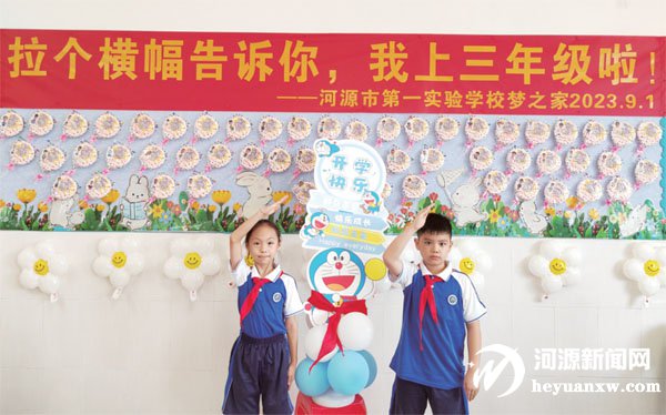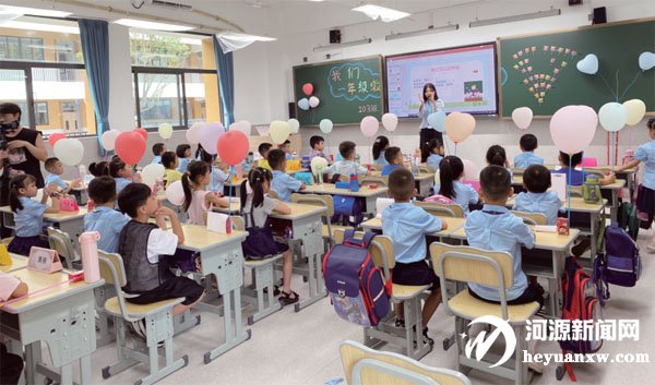 河源市第二小學近2600名孩子們以朝氣蓬勃的精神面貌迎來了他們的新學期新氣象。該校副校長殷新航介紹,為了迎接新學期的開始,學校提前做了不少準備。為孩子們準備了很多具有開學氛圍的裝飾、一年級入學禮以及開學典禮,為孩子們營造了濃郁的開學氛圍。除此之外,學校提前一周對校園各處進行全面消殺,各班主任也對班級進行全面的清潔,為學生打造一個衛生干凈的學習環境。