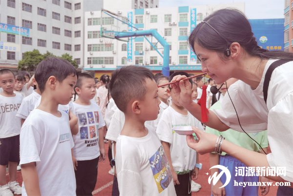 源城區下城小學老師為一年級新生朱砂點“智”。
