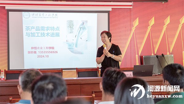 培訓上,仲愷農業工程學院輕工食品學院、廣東省茶葉學會副秘書長張秒高博士以生動的案例深入淺出地為大家講解我國茶葉產業產銷現狀、茶產品品質要求和傳播、茶葉加工新技術與新裝備等方面的知識,全方位幫助當地茶農改進茶葉栽培管理技術,解決茶農在發展茶產業過程中碰到的問題,不斷提高種植效益。