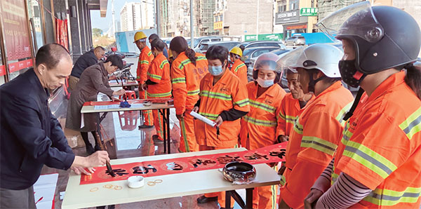 為環(huán)衛(wèi)工義寫春聯(lián)