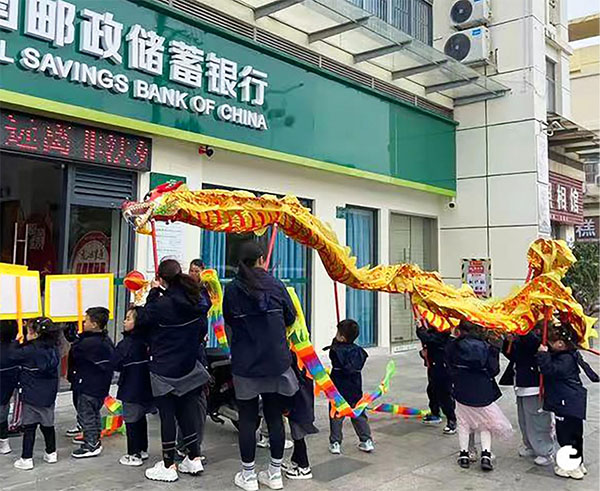 一起游戲,一同歡樂。為增加活動的趣味性,郵儲銀行河源市城區支行準備了“童真童趣,龍行龘龘”舞龍小游戲,特邀約周邊幼兒園小朋友參加,讓小朋友們通過民間傳統舞龍游戲,增強對民俗文化的認識,感受中華傳統的魅力。小朋友們對舞龍游戲產生濃厚的興趣,紛紛參與,體驗舞龍小游戲的快樂。