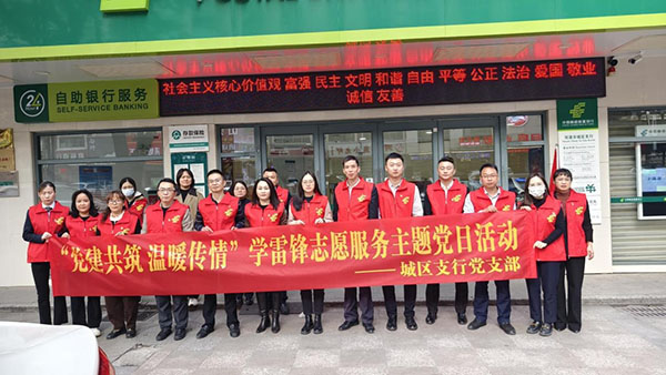 郵儲銀行城區(qū)支行開展“黨建共筑 溫暖傳情”學(xué)雷鋒志愿服務(wù)活動