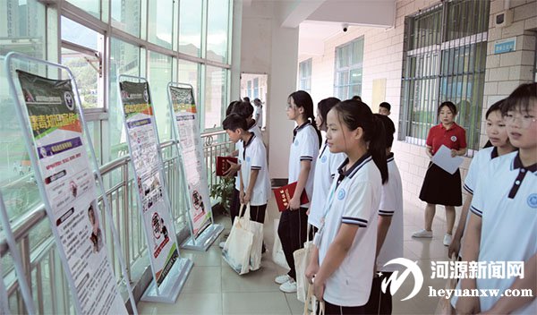 學生參觀宣傳展板了解禁毒知識。