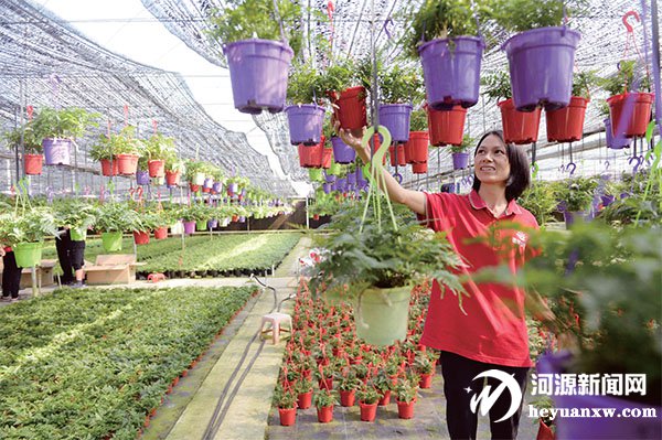 走進和平縣公白鎮美塘村的德福農業種植基地,各色花卉競相開放,一盆盆花卉小盆栽被送至儲存點,等待著運輸出去。“這花卉是我們美塘村的‘幸福花’。”美塘村村民彭女士說,自從村里有了花卉基地,村民在家門口就可以掙錢了。美塘村黨支部書記李偉揚介紹,廣東德福農業有限公司(下稱德福農業)在美塘村打造了福和鄉村振興花卉示范基地,建設了60畝現代農業設施大棚基地,每年可為村集體經濟增收近10萬元,有效帶動村民就近務工增加收入。
