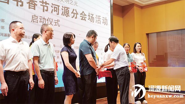 啟動儀式上,河源新華書店向單位、社區、學校、企業代表捐贈圖書。