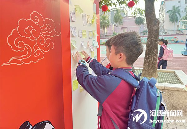 河源市第二小學的學生在許愿區寫下對新學期美好的祝愿和期待。