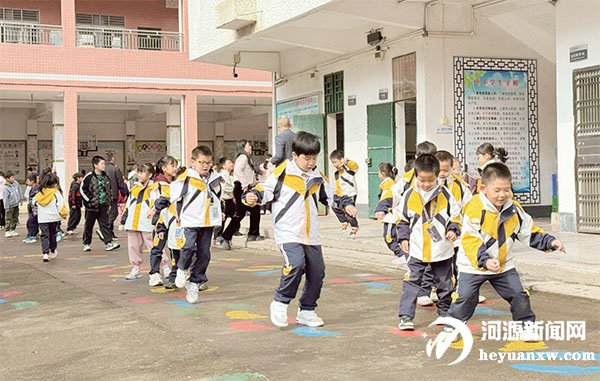 河源市第二小學,下課鈴響起,學生飛快地奔向操場,校園變成“歡樂海洋”。