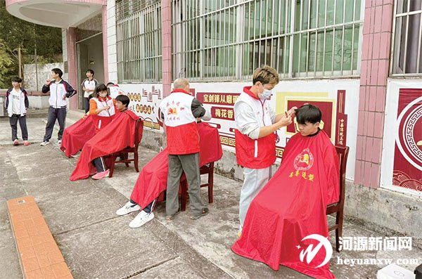 龍川縣“益剪暖龍川 愛心傳萬家”文明實(shí)踐活動中,志愿者為學(xué)生義剪。