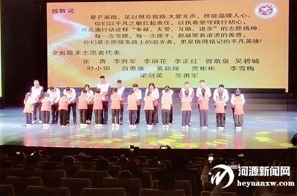 河源市志愿服務嘉許禮暨展示交流晚會上,向先進代表獻花。