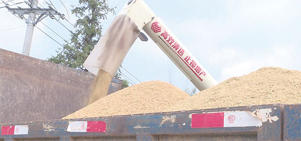 走進龍川縣龍母鎮龍邦村,連片的稻田如同鋪就了一張金色的地毯,飽滿的稻穗把稻稈壓彎了腰,微風拂過,稻浪翻滾,送來陣陣稻香。田間,收割機正開足馬力來回穿梭,伴隨著機器轟鳴聲,稻穗被快速卷入,脫粒、清選一氣呵成,金黃的稻谷隨即被裝入車中,不一會兒便堆起了“小金山”。村民們或協助搬運稻谷,或俯身察看谷粒飽滿度,臉上滿是豐收的笑容,田間地頭呈現出一幅“稻花香里說豐年”的生動畫面。