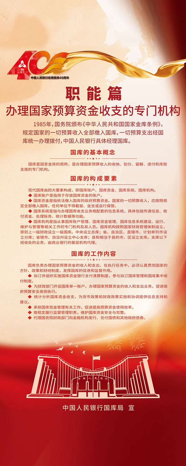 “人民銀行經理國庫40周年”主題宣傳之“歷史篇”、“職能篇”、“服務篇”、“成效篇”、“未來篇”