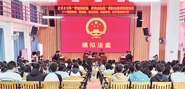 本報(bào)訊 記者 謝夢君 通訊員 劉芷君 “現(xiàn)在開庭!”清脆的法槌聲響起,連平縣附城中學(xué)校園內(nèi)鴉雀無聲,全校2500余名師生在階梯教室現(xiàn)場或在課室通過同步直播,共同觀看了以防范電信網(wǎng)絡(luò)詐騙為主題的模擬法庭。近日,連平縣人民法院聯(lián)合縣人民檢察院、縣司法局、縣教育局在該校開展模擬法庭進(jìn)校園活動,以真實(shí)的案例、嚴(yán)謹(jǐn)?shù)牧鞒,揭開電信詐騙的“偽裝”,讓抽象的法律知識變得具象。
