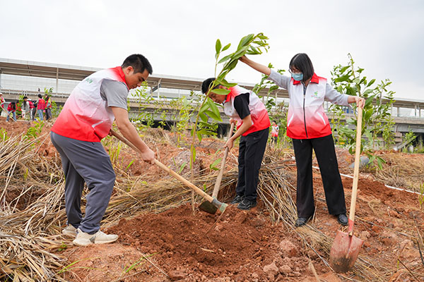 在河源東站東南側的義務植樹點,何國森、余其豹等市幾套班子領導與干部群眾、駐河部隊官兵、青年志愿者代表、香港河源社團總會代表等200多人一道,揮鍬鏟土、植苗填坑、圍堰澆水,合力栽下相思樹、榕樹等喬木1000多株。當天,市縣鎮村四級共開展植樹場次1249場,參與植樹造林干部群眾3.68萬人,共植樹超16萬株。在大家的辛勤勞動下,一棵棵新栽種的樹苗迎風挺立、生機盎然,全市上下積極投身綠美河源生態建設的畫卷徐徐展開。