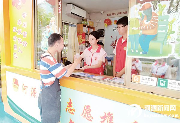 5月4日上午,河源文化廣場志愿驛站舉辦“賡續(xù)五四精神 青春挺膺擔(dān)當(dāng)”主題活動,組織青年志愿者以經(jīng)典共讀感悟先輩熱血,以思想碰撞凝聚奮進(jìn)力量。除開展活動外,志愿者們還以實際行動服務(wù)市民游客。當(dāng)日,記者看到,在河源文化廣場志愿驛站,志愿者正在為市民游客提供貼心的服務(wù)。大學(xué)生志愿者許桂鋆表示,他在安徽上大學(xué),五一假期返回家鄉(xiāng)河源,特意來參加志愿服務(wù)活動。