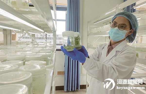 記者在廣東省馬鈴薯南繁育種基地的組培實驗室里看到,經過組培苗擴繁轉接,一株株綠色幼苗在透亮的玻璃瓶里茁壯成長、生機勃勃。這些幼苗是馬鈴薯脫毒種薯繁育的“初始形態”。張鋒年說,實驗室去年8月開始培育第一批組培苗,從一開始的幾十瓶苗到去年年底已繁育了近200萬株苗,今年計劃生產超過600萬株苗。