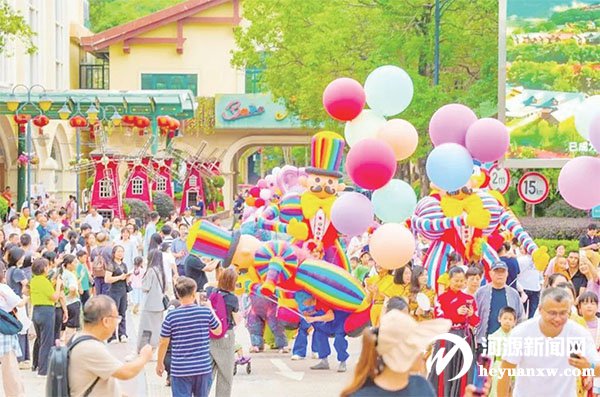源城區巴伐利亞莊園活力四溢,游客與“恐龍”激戰,暢享清涼歡樂;百人國潮大巡游熱鬧非凡,國潮元素與現代活力交織;非遺表演精彩紛呈,展現傳統文化魅力;歡樂魔術秀驚喜不斷,吸引眾多游客前來參與。