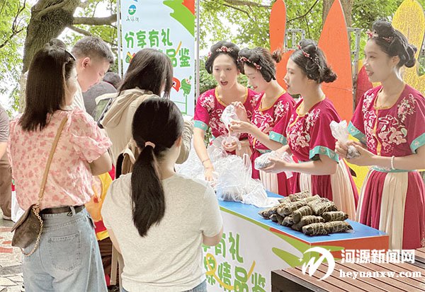 萬綠湖景區為游客送上粽子。